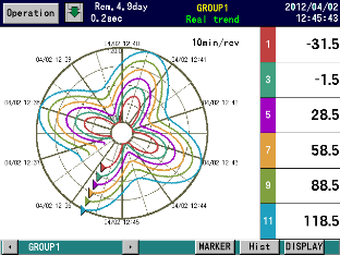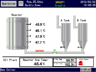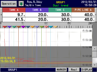 Operating screen selection --- Trend, data, bar-graph, historical trend, alarm display, maker list Display selection on each screen --- Group 1 to 5 selectable |