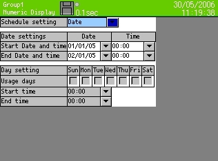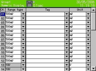 Recording cycle 500ms or faster --- up to 3 groups of 12 points/group can be programmed. Recording cycle 1s or slower --- up to 5 groups of 44 points/group can be programmed. (up to total of 100 points) |